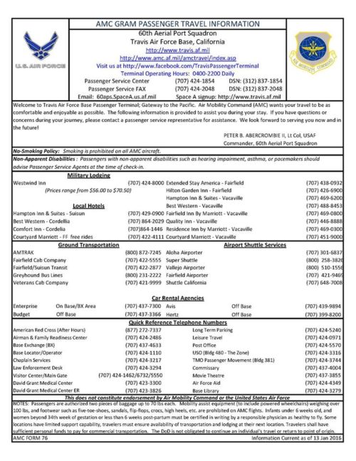 60 AMW/CVR 540 Airlift Drive – Room E118 Travis AFB, CA 94535-2451