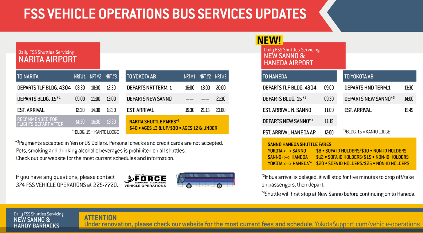 Force Support Squadron Shuttle Bus Schedule, Inside Yokota AB Transportation to Narita