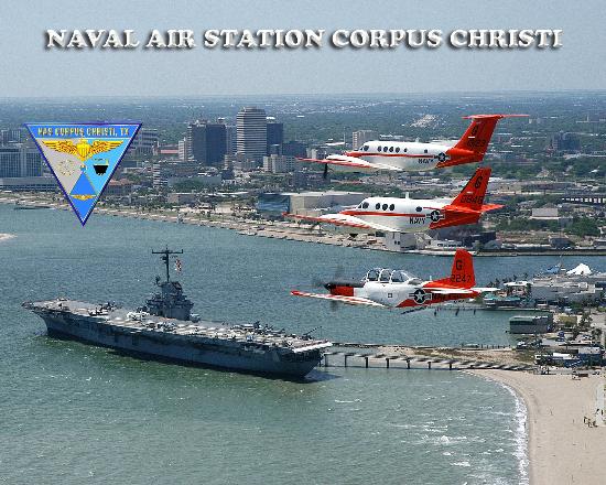 Naval Air Station Corpus Christi is a naval base located six miles (10 km) southeast of the central business district (CBD) of Corpus Christi, in Nueces County, Texas, USA. Surrounded on three sides by water — Corpus Christi Bay, Oso Bay and the Laguna Madre — Naval Air Station Corpus Christi has been home to Naval pilot training since 1941. Today, Navy, Marine Corps, Coast Guard and foreign student pilots earn their wings training in the fours squadrons of Training Air Wing FOUR, using NAS’ Truax Field and outlying airfields.